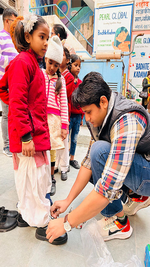 The organization is continuously working to provide shoes, sweaters, and clothing to underprivileged children by visiting government schools to protect them from the cold and discomfort.